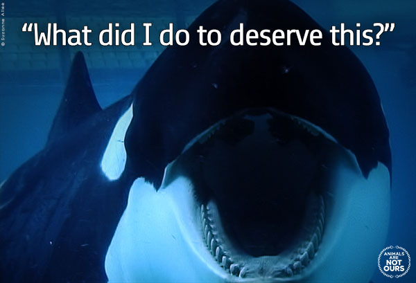 SeaWorld traps giant orcas in tiny tanks and has separated babies from their moms. It's like prison, but for animals who didn't do anything wrong. Orcas are super smart and like to swim really far in the ocean (up to 140 miles a day!), but at SeaWorld, they don't have anything meaningful to do and they have barely any space to swim in. Can you imagine how terrible it would feel to be stuck in one spot with nothing to do all day?